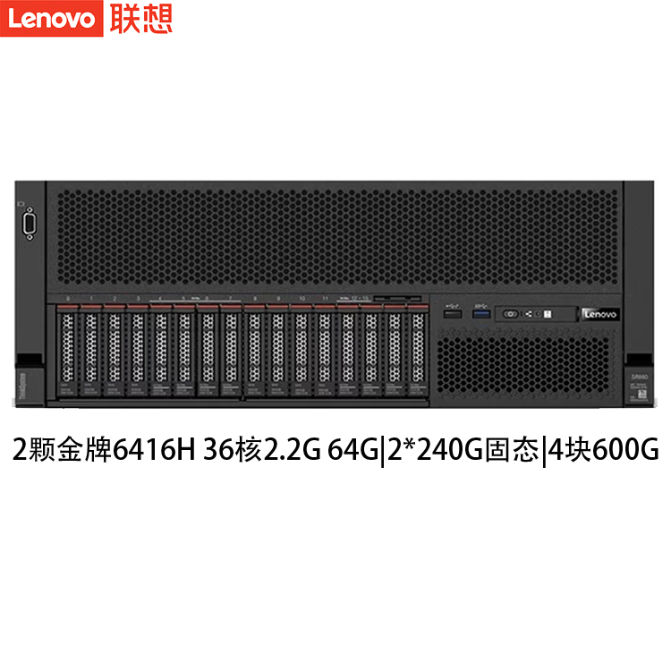 联想(Lenovo)ThinkSystem SR858 2U四路机架式服务器 高性能超运算主机 2颗6416H 三十六核主频2.2Ghz 64G丨960G固态+5块600G丨RAID5