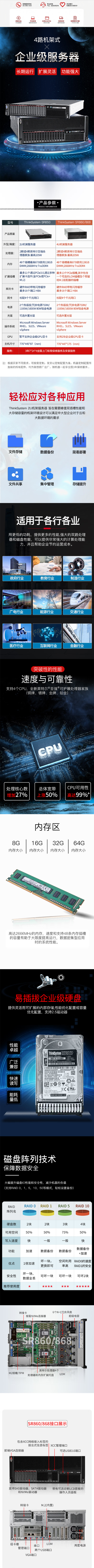 联想(Lenovo)SR868/SR860机架式服务器4U双路 GPU主机 OA应用深度学习 2颗金牌6416H 36核2.2GHz 64G|2*240G SSD |4*600G