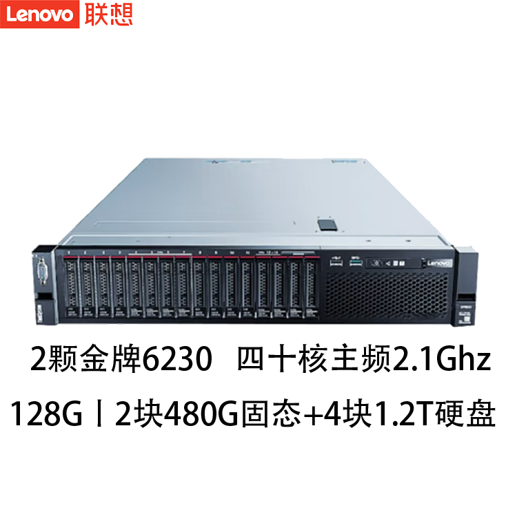 联想(Lenovo)ThinkSystem SR850P 2U四路机架式服务器 高性能超运算主机 2颗金牌6230四十核主频2.1Ghz 128G丨2块480G固态+4块1.2T硬盘