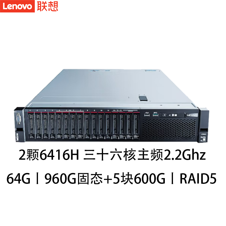 联想(Lenovo)ThinkSystem SR858 2U四路机架式服务器 高性能超运算主机 2颗6416H 三十六核主频2.2Ghz 64G丨960G固态+5块600G丨RAID5